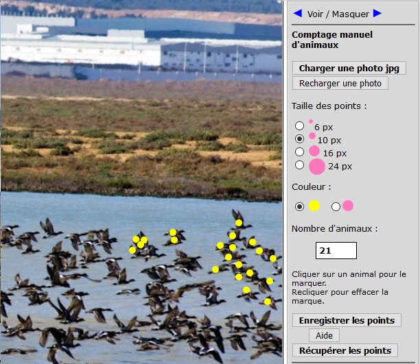 On les compte en les marquant d'un point coloré en cliquant avec la souris.